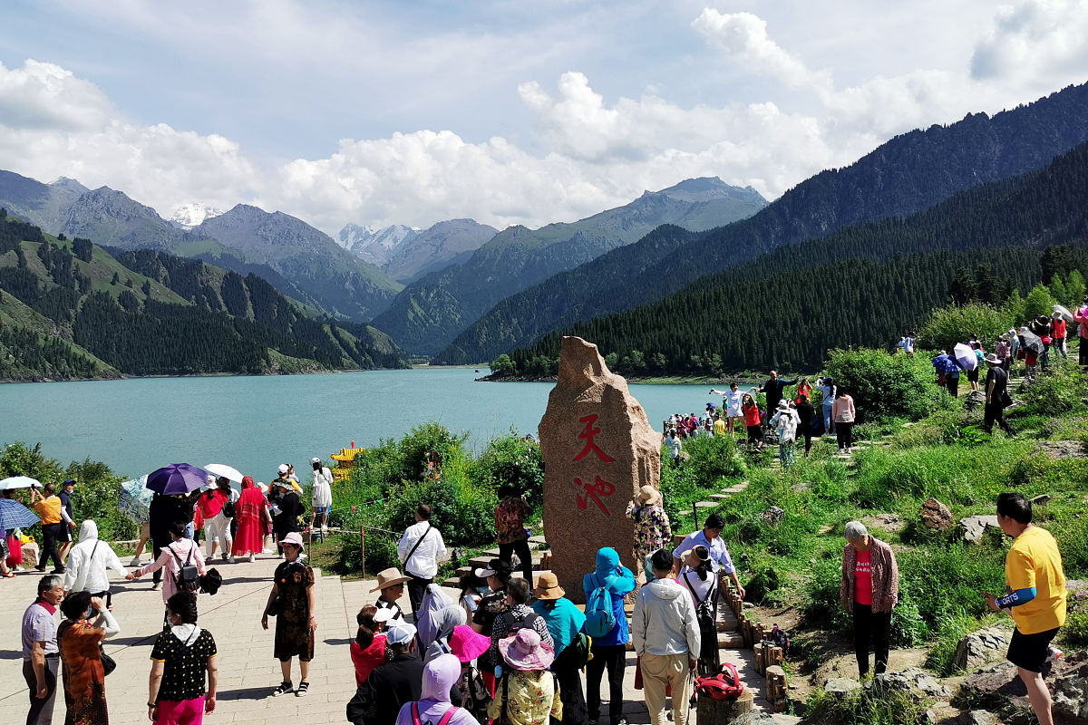 进入景区从游客中心到核心景点天池,需要乘坐交通车,行程约40分钟途中景点交通车会途径哈萨克民俗村,但部分景点如西小天池一线天等可能不停车,需根据座位情况决定能否观赏三核心景点游览 天池边到达天池后,可沿着木栈道步行游览,欣赏群峰环绕层峦叠嶂的美景天池的水色随天气变化,多云天气下。